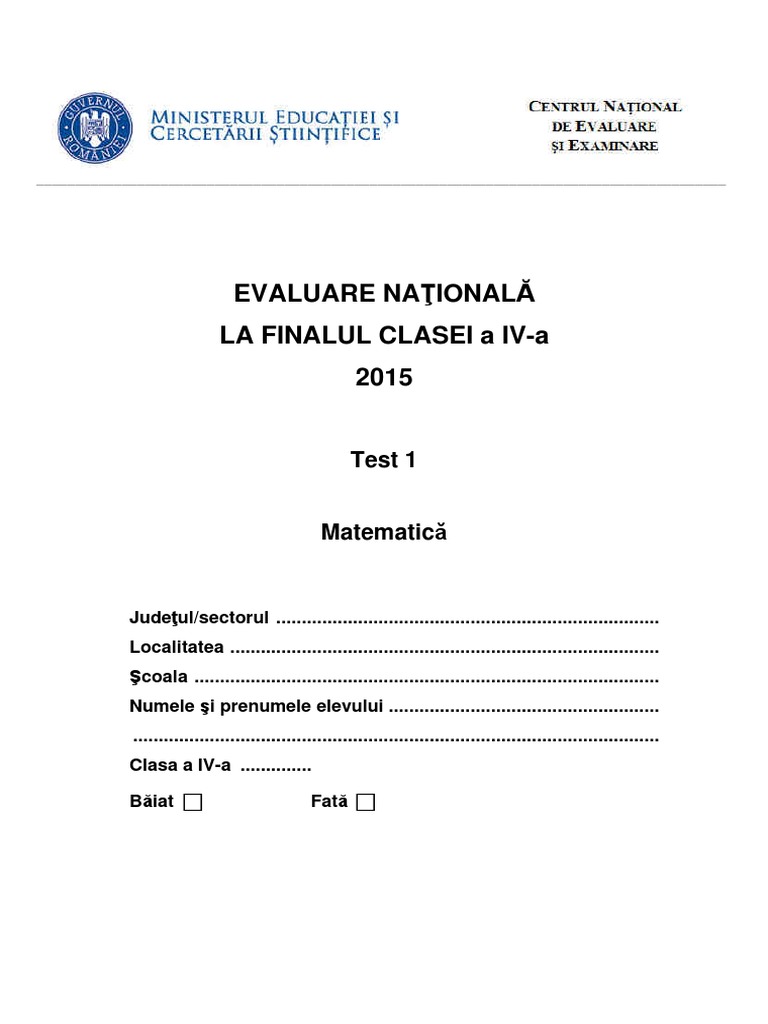 Evaluare nationala clasa 4 2015. Pentru ca nimic nu trebuie invatat pe de rost nici macar teoremele sau regulile de care trebuie sa tinem cont in limba romana cei mici trebuie invatati inca de mici sa gandeasca logic. Matematica cls a 4 a. Rezultatele finale vor fi facute publice in 30 iunie. Miercuri va fi sustinuta proba la matematica care este si ultima.