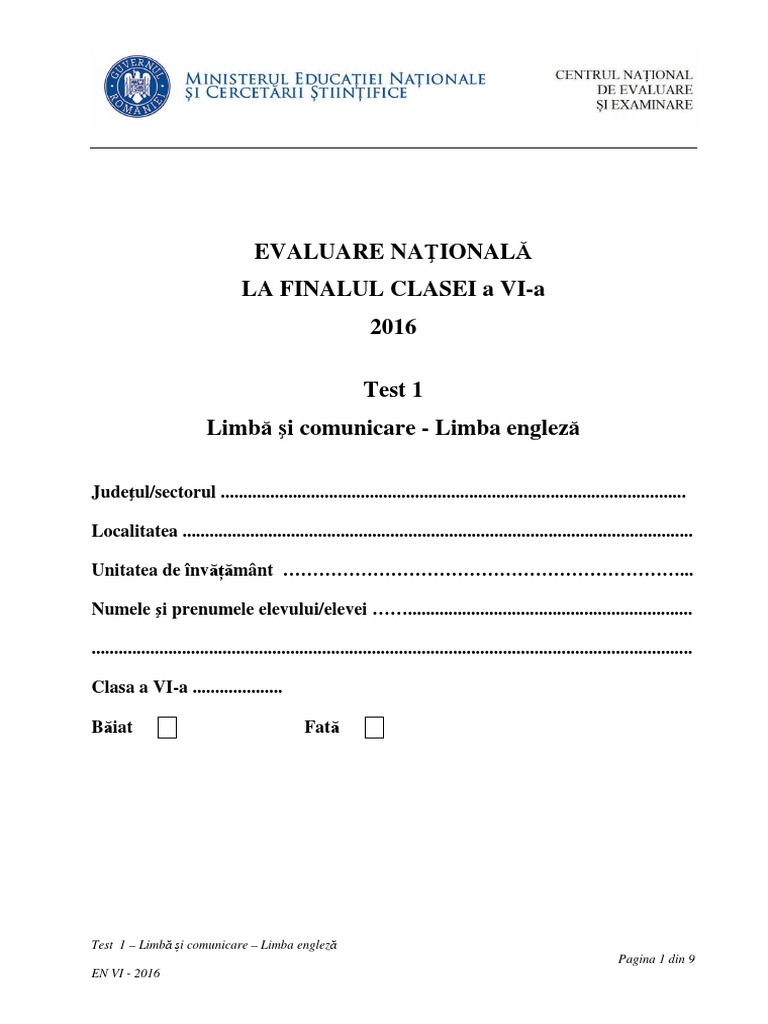 Matematica si stiinte subiecte oficiale edu 11 mai 2017 jitaru blog jitaru blog wordpress jitaru ionel jitaru ionel blog. Evaluarea naţională pentru clasele a ii a a iv a şi a vi a evaluările pe care elevii de clasa a ii a a iv a şi a vi a trebuiau să le susţină din 6 mai au fost amânate cu aproape o lună. Calendarul evaluarii nationale de la finalul clasei a vi a 2016. Limbă şi comunicare.