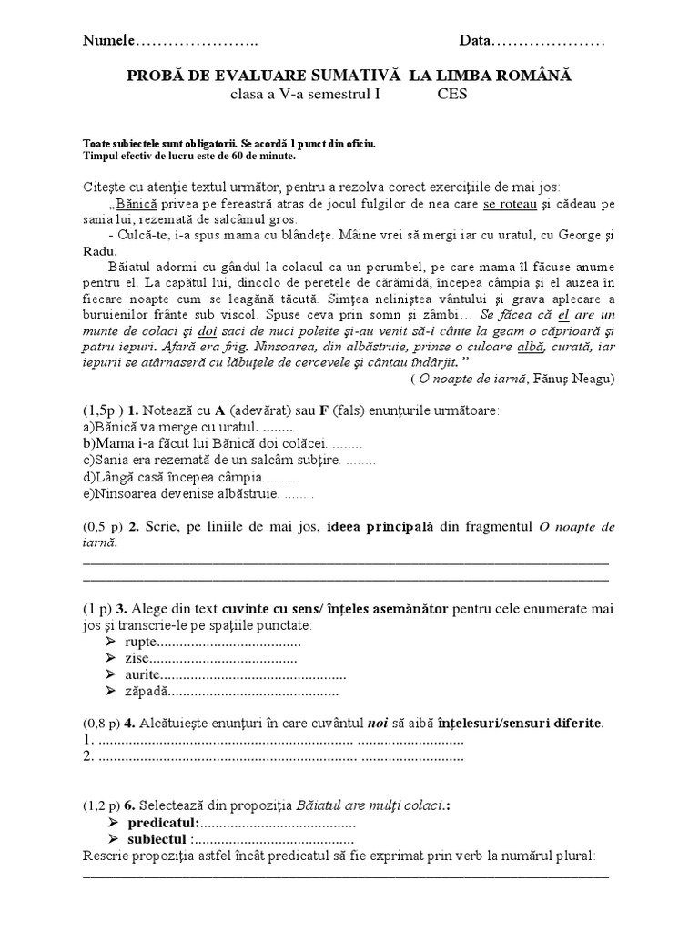 Evaluare sumativa clasa 1 limba romana. Prima pagină învăţământ primar limba şi literatura română teste evaluare sumativa clr clasa 1 evaluare sumativa clr clasa 1 9 februarie 2018 22 10. Nu se acordă puncte din oficiu. Auxiliare comunicare in limba romana clasa 1 pentru anul scolar 2019 2020. A inceput sa ninga.
