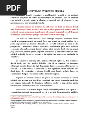Declaratia de avere va trebui depusa numai de catre persoanele fizice pentru care exista elemente serioase care sa conduca la suspiciunea de evaziune fiscala si care intra in procedura de verificare fiscala a declarat luni pentru agerpres secretarul de stat in ministerul finantelor publice mfp dan. Exista cazuri de evaziune fiscala in care diferite societati sau persoane fizice se sustrag de la plata obligatiilor fiscale pe care le au. 5 c penal la pedeapsa de 10 000 lei amendă penală și pedeapsa complementară prevăz. Evaziunea fiscală reprezintă sustragerea unor persoane fizice sau juridice de la plata impozitelor sau taxelor.