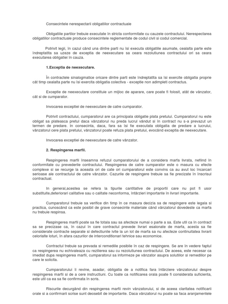 Cu toate acestea excepţia de neexecutare este universal recunoscută în dreptul comparat de regulă în dreptul continental se invocă drept argument al excepţiei de neexecutare a contractului regula reciprocităţii şi interdependenţei obligaţiilor părţilor în contractele sinalagmatice aşadar pandantul primar al principiului forţei obligatorii 4 în unele sisteme de drept. Spre deosebire de posibilitatea invocării excepţiei de neexecutare a contractului rezoluţiunea contractului prezintă importanţă pentru desfiinţarea contractului în timp ce în cazul invocării excepţiei partea care a invocat o rămâne legată de contract iar dacă cealaltă parte îşi execută obligaţiile atunci şi partea care s a prevalat de excepţia de neexecutare va trebui. Functionarea exceptiei de neexecutare. Exceptia de neexecutare a contractului.