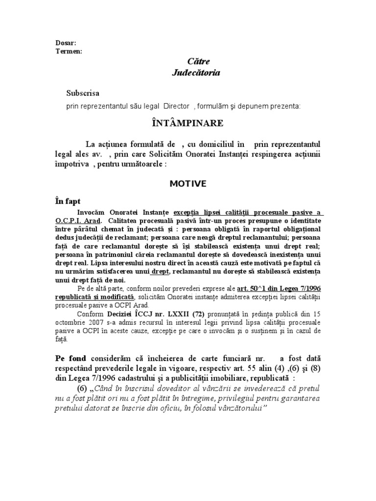 Sa ca fiind introdusă de o persoană fără calitate procesuală activă. Admiterea exceptiei conduce la respingerea actiunii ca fiind introdusa de o persoana fara calitate procesuala daca a fost invocata exceptia lipsei calitatii procesuale active sau impotriva unei persoane lipsita de calitate procesuala pasiva daca s a contestat calitatea procesuala a paratului de a sta in proces 2. Excepţia lipsei calităţii procesuale pe parcursul procesului lipsa calităţii procesuale se invocă pe cale de excepţie de oricare dintre părţi de către procuror sau instanţă din oficiu excepţia lipsei calităţii procesuale este o excepţie de fond absolută şi peremptorie. 590 din 4 martie 2015 a respins excepția inadmisibilității pentru lipsa procedurii prealabile excepția lipsei calității procesuale active excepția lipsei de interes a reclamantei excepția lipsei calității procesuale pasive a pârâtului ministrul culturii excepția lipsei.