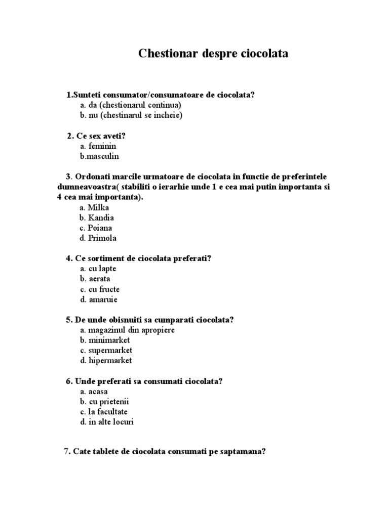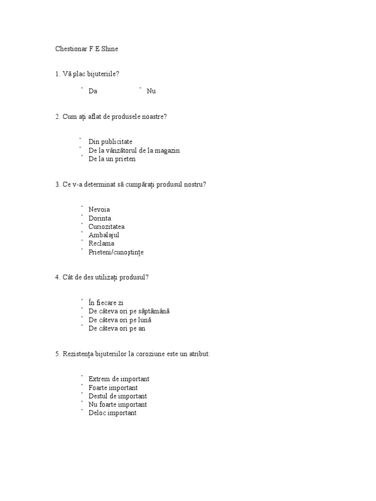 Exemplu De Chestionar Pentru Un Produs