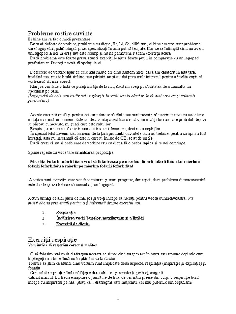 Bucură te cum s a bucurat bucuroaia de bucuria lui bucurel care s a întors bucuros de la bucureşti. Exercitii de dictie în funcție de dificultate exercitii de dictie usoare eu consider că înainte de a te gândi la exercitiile de dictie clasice de tipul șase sași în șase saci sau știu că știi că știu că știucă trebuie să înțelegi că o dicție bună reprezintă rezultatul controlării corespunzătoare a mușchilor și articulațiilor feței.