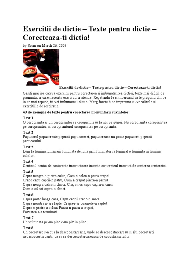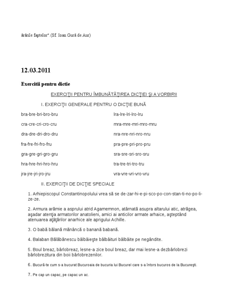 La origine ele sunt exerciții de dicție pe. Limba engleza se invata usor prin articolele noastre de gramatica engleza conversatie si vocabular. Tests and grammar exercises for learning and practicing english teste si exercitii pentru invatare si exersare limba engleza. Nu doar copiii care nu reușesc să pronunțe corect anumite sunete au nevoie de exerciții de dicție.