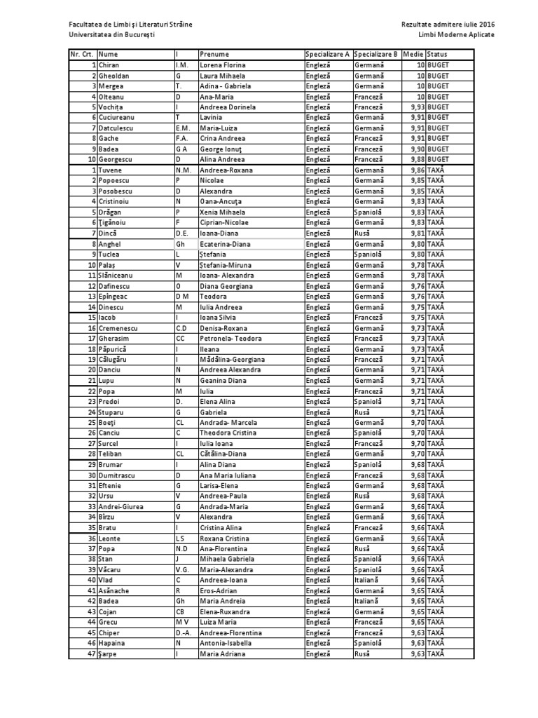 Facultatea de limbi straine bucuresti admitere 2016. Amici mentre io rassegnarsi di accompagnare i miei genitori in campagna. Din cauza numărului mare de dosare depuse și a unor dificultăți tehnice rezultatele concursului de admitere din facultatea de limbi și literaturi străine vor fi publicate vineri 24 iulie în jurul orei 12 00 pe site și la avizier în sediul din pitar moș. Proba scrisä la limba italiana i a. Peste 3200 de tineri susțin astăzi 25 iulie examenul de admitere la universitatea de medicină și farmacie carol davila din bucurești.