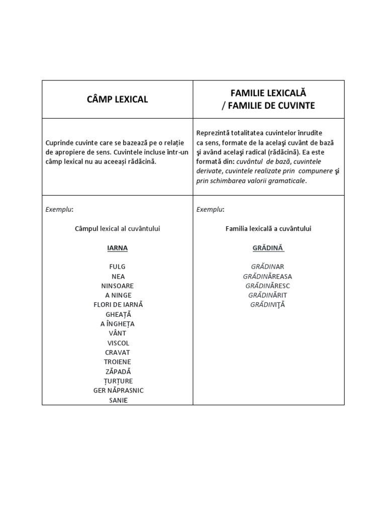 Familia lexicala este formata din derivate cuvinte compuse si cuvinte fm. După alți autori familia lexicală cuprinde și cuvinte împrumutate a căror rădăcină este și la baza cuvintelor formate pe terenul limbii. Trimisă pe 9 decembrie. Generalitati definitie tipuri exemple exercitii rezolvate.