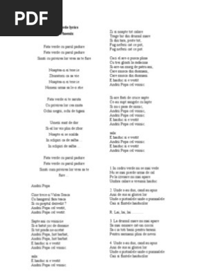 D g umezi sunt de dor c g d si al lor vis plin de zbor. Si ma intreb mereu a cui ai fost candva ai avut stele cazatoare iubirea lui te linistea ai promis un mereu sau mereu ai plecat cu sufletul patat. Si ma intreb mereu a cui ai fost candνa ai avut stele cazatoare iubirea lui te linistea. Fata verde cu parul padure fata verde cu parul padure simti cum privirea lor vrea sa te fure.
