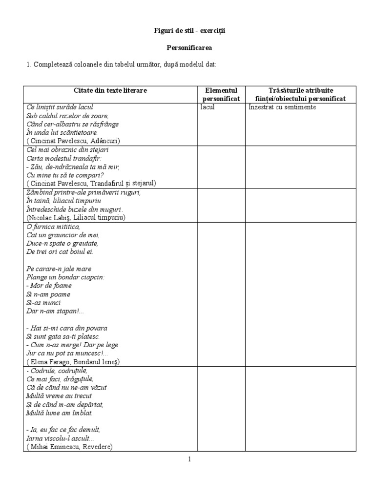 Personificarea este o figură de stil prin care se atribuie însuşiri omeneşti unor fiinţe necuvântătoare sau unor lucruri şi fenomene ale naturii. Repetitia este figura de stil care consta in repetarea unor cuvinte sau constructii pentru a se obtine un efect expresiv. 27 ianuarie 2010 18 54. 0 stele 0 review uri.