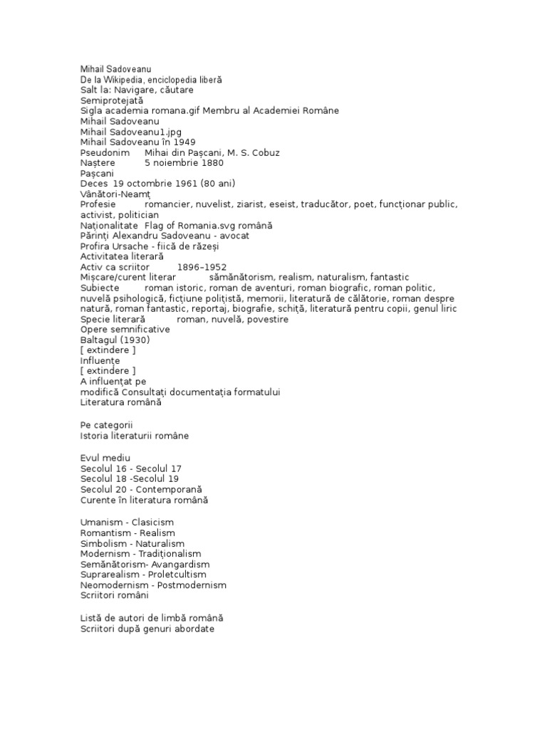 Cleopatra mihăilescu tudora piţilă casa muzeu mihail sadoveanu din făltice. Occasionally referred to as mihai sadoveanu. Comentarii fisa de lectura baltagul de mihail sadoveanu date despre autor comentarii in 1880 la 5 noiembrie se naste mihail sadoveanu la pascani ca fiu al lui alexandru sadoveanu avocat de origine olteneasca si al profirei ursaki fiica de razes din satul verseni. November 5 1880 october 19 1961 was a romanian novelist short story writer journalist and political figure who twice served as acting head of state for the communist republic 1947 1948 and 1958.