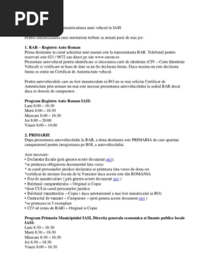 Fisa De Inmatriculare Auto Iasi