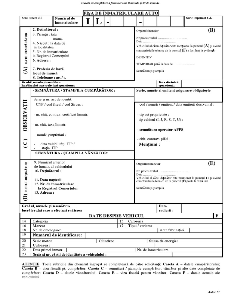 Fisa de inmatriculare auto author. Dan ungureanu created date. Numarul de inmatriculare serie imprimat c i. 610 1992 privind cartea de identitate a vehiculului cumpărați documentul în formă actualizată sau alegeți un abonament lege5 care permite accesul la orice formă actualizată.