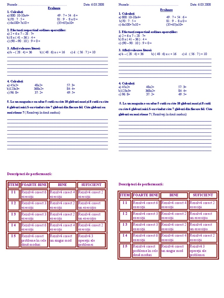 Este necesar ca la sfarsitul acestui capitol copilul. Facem practic o recapitulare a cunoștințelor dobândite în clasa a ii a. Fișa de lucru însoțește jocul didactic descris în articol. Fişă de lucru cu adunări scăderi înmulţiri cu exerciţii şi probleme gratuită şi uşor de printat.