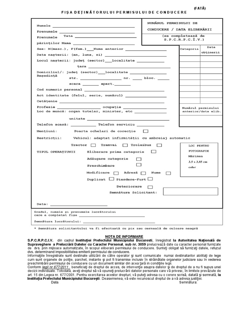 Fisa detinatorului permisului de conducere. Prenumele tata se completează de s p c r p c i v părinţilor mama. Fisa detinatorului permisului de conducere drpciv. An luna zi locul nasterii. La obţinerea permisului de conducere şi a conducători.