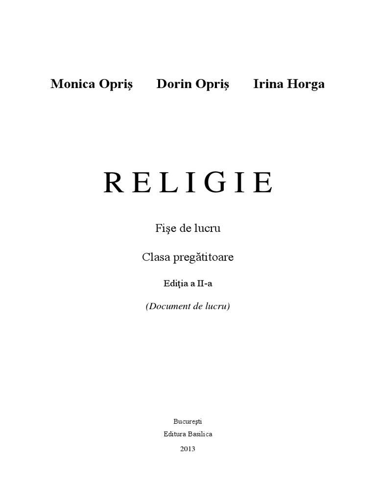 Religie fişe de lucru clasa pregătitoare editura basilica a patriarhiei române bucureşti 2013.