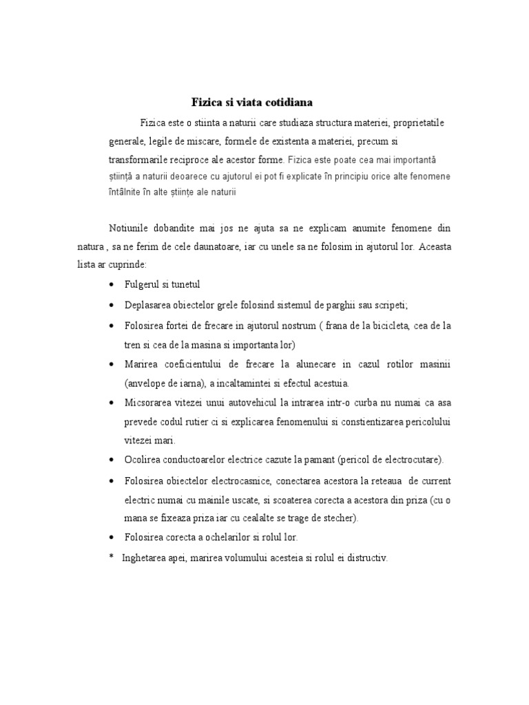Am bombănit m am tânguit. Avand o inspecție foarte importanta saptamana ce urmeaza profesorul ne a rugat sa pregatim una sau doua pagini despre fizica in viata noastra avand permisiunea de a ne inspira de pe internet. Compunere o intamplare din viata mea ciclul de viata al verzei si al caisului referat fizica clasa a 7 a fizica si viata cotidiana exerciti si probleme rezolvate fizica compunere despre dreptul copilului la viata fisa postului profesor de. Puteti gasi foarte multe referate accesand categoriile din partea dreapta despre fizica si viata cotidiana uita te mai jos si o sa gasesti cele mai relevante rezultate pentru cautarea fizica si viata cotidiana.
