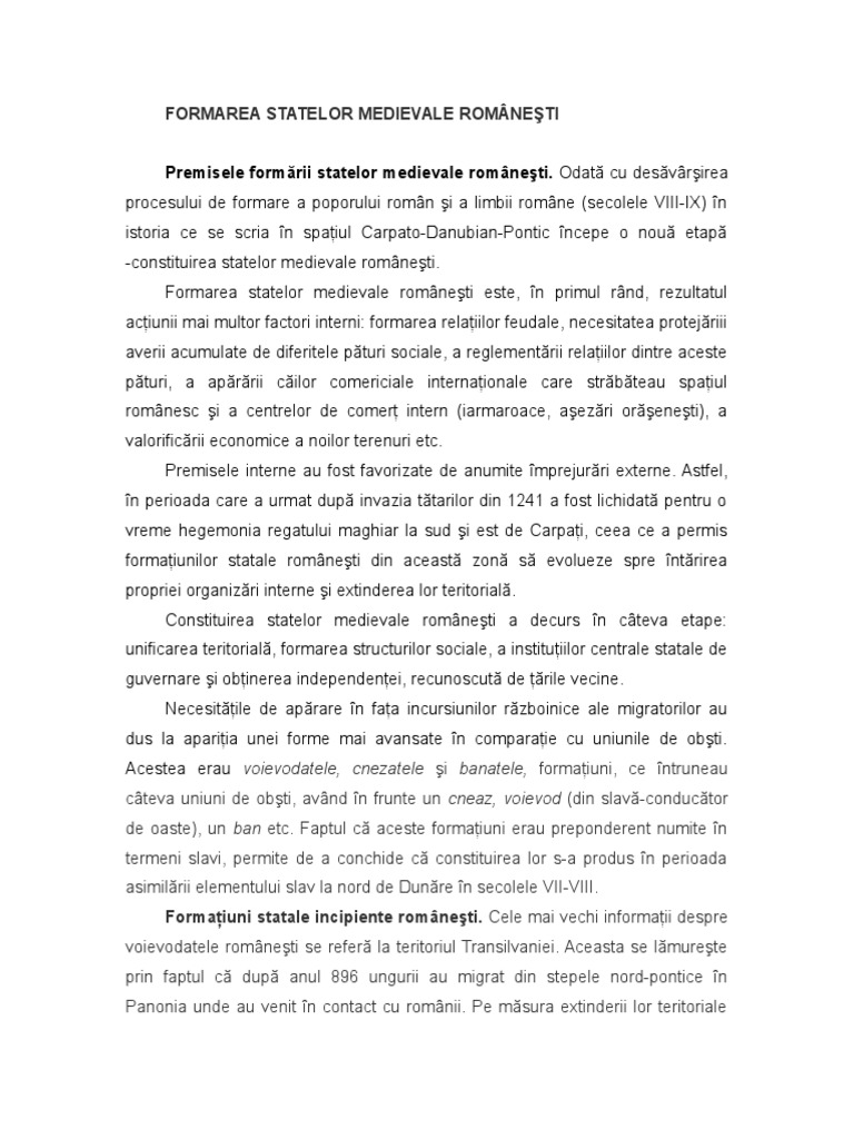 Formarea Statelor Medievale Romanesti Rezumat Pe Scurt