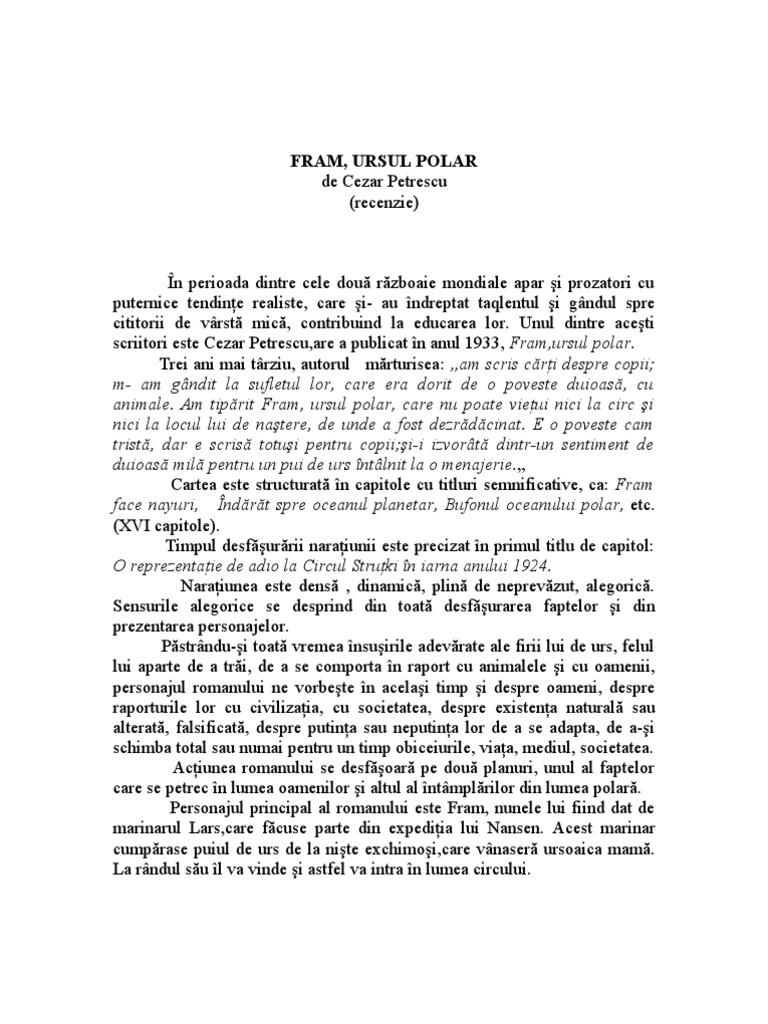 Please enter your comment. Fram ursul polar de cezar petrescu repovestire cartea cuprinde 16 capitole şi o voi repovesti urmărind împărţirea propusă de autor. Descopera noile aventuri ale lui fram ursul polar. Ursul fram vedeta circului strutki a uitat toate acrobatiile pe care stia sa le faca.