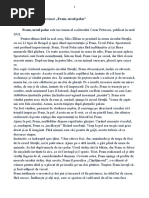 Rezumat in iarna anului 1924 oamenii participa la reprezentatia de adio a circului strutki. Două rezumate ale romanului fram ursul polar scris de scriitorul român cezar petrescu în anul 1931. Miss ellian imblanzitoarea ii prezinta pentru ultima oara pe cei doisprezece tigri de bengal. La circul struțchi are loc ultima reprezentație.