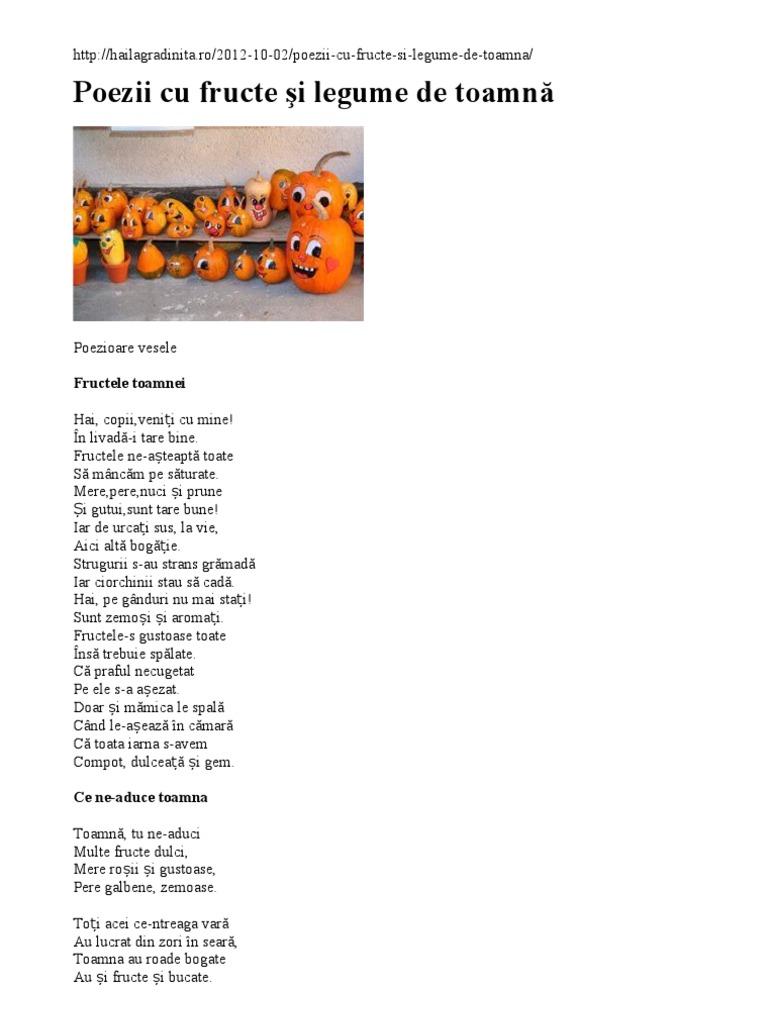 Retete pentru bebelusi si copii. Toți acei ce ntreaga vară au lucrat din zori în seară toamna au roade bogate au și fructe și bucate. Facebook google email print. Balon dezumflat galben colorat are mustacioară si se cheama para un rotund putin turtit in livada gazduit are frunza şi codita mustati dar nu i pisicuta.