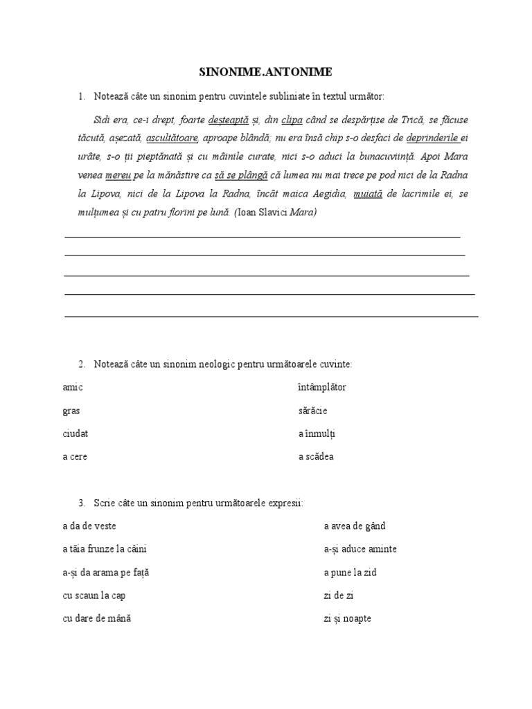 Găsește Câte Un Sinonim Pentru Următoarele Expresii