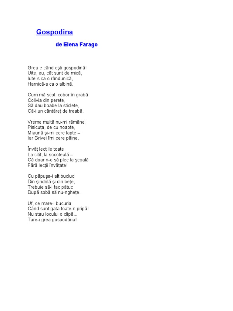 Tu nu știi oare că s mic și eu și ca mă doare. Sa fim buni aparuta in anul 1922 ziarul unui motan 1924 sau intr un cuib de randunica 1925. Poezia gândăcelul de elena farago. Gândăcelul elena farago suplimentar octombrie 2010.