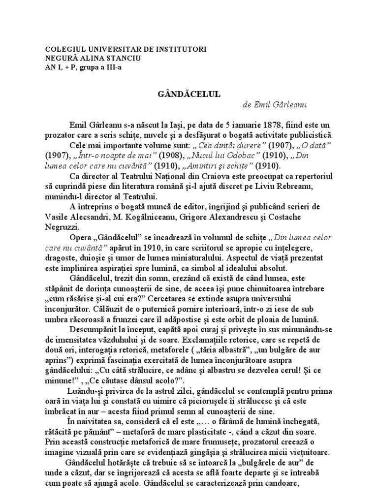 Gandacelul de elena farago comentariu. 0 stele 0 review uri. Vezi mai multe poezii de. 3 octombrie 2010 16 02. De ce m ai prins în pumnul tău copil frumos.