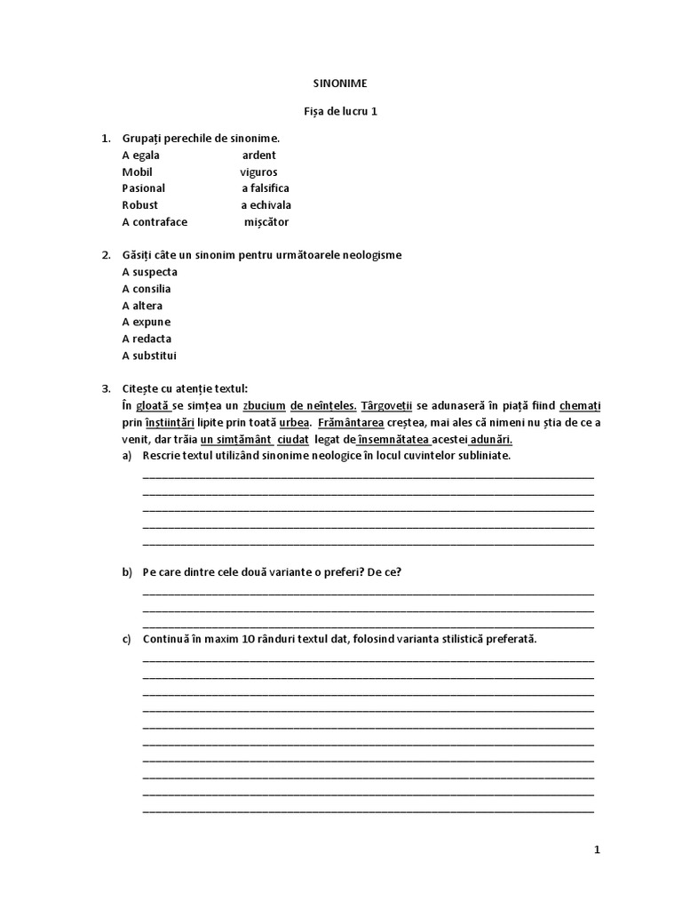 Gasiti Cate Un Sinonim Neologic Pentru Urmatoarele Cuvinte