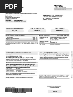 întrerupă furnizarea gazelor naturale începând cu a 46 a zi calendaristică de la data emiterii. în cazul neachitării facturilor gdf suez energy romania poate să. Pentru mine a fost chiar o problema pentru ca noi nu avem centrala in apartament iar la cat gătim noi factura la gaze vine maxim 10 15 lei pe luna. Descarca aplicatia gratuit pentru smatphone si poti plati facturi de oriunde mai rapid si mai simplu.