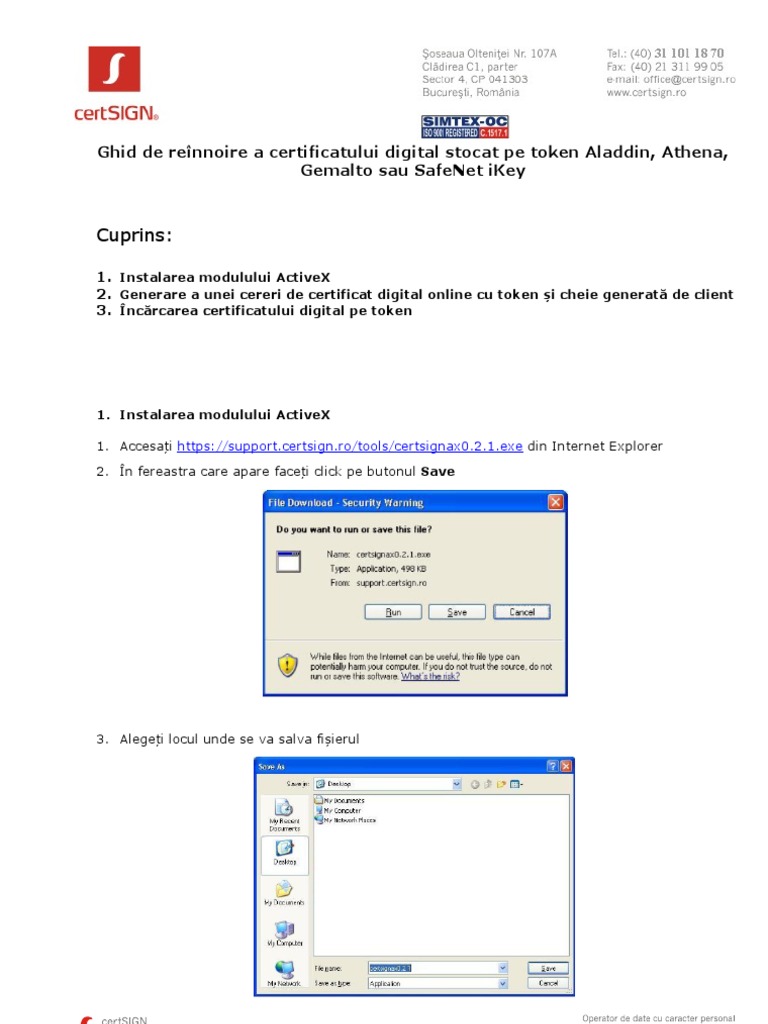 For the english version of this guide click here. Acum îți putem emite un certificat cu o valabilitate de 1 2 sau 3 ani. în cazul în care vă apropiaţi de finalul perioadei de valabilitate a certificatului calificat de semnătură electronică puteţi realiza reînnoirea online a acestuia fără a mai fi necesară deplasarea la sediile certsign partenerilor noştri. Safenet aladdin athena athena gemalto gemalto oberthur.
