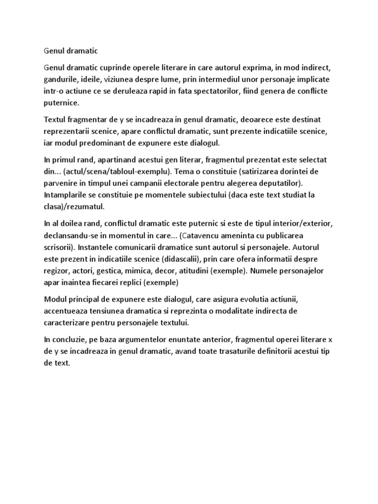 Genul dramatic clasa a 8 a. 12 puncte în compunerea ta trebuie. Doina redactează o compunere de 150 250 de cuvinte în care să motivezi apartenenţa la specie a doinei populare foaie verde fir mohor. Un model de argumentare pentru genul dramatic care se poate aplica pe orice text dramatic cu mici adaptari învăţământ gimnazial limba şi literatura română fişe de lucru clasa a 8 a. Plan de argumentare a apartenentei unui text la genul epic.