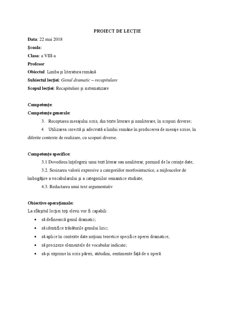 Vizualizaţi 1 review 6881 descărcări adăugat la. Limba si literatura romana subiectul didactica pedagogie. Toata programa pentru evaluarea nationala clasa a 8 a. Genul dramatic cuprinde totalitatea operelor scrise pentru a fi reprezentate pe scena unui teatru.