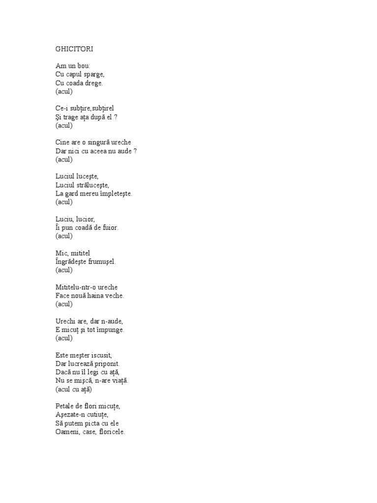 Ghicitori scurte mai ușoare sau mai grele pot fi spuse atât copiilor mici cât și celor mai mari.