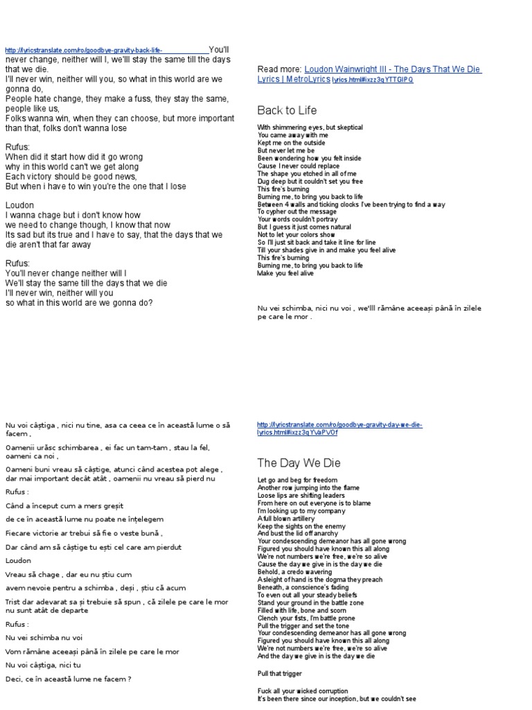 Goodbye to gravity the day we die lyrics. Goodbye to gravity the day we die lyrics. Let go and beg for freedom another row jumping into the flame loose. Lyrics to the day we die by goodbye to gravity. Goodbye to gravity versuri the day we die in romana da drumul si roaga te pentru libertate inca un rand sarind in flacari buzele moi sunt liderii schimbarii de acum incolo oricine este vinovat ma uit in sus goodbye to gravity the day we die romana lyrics.
